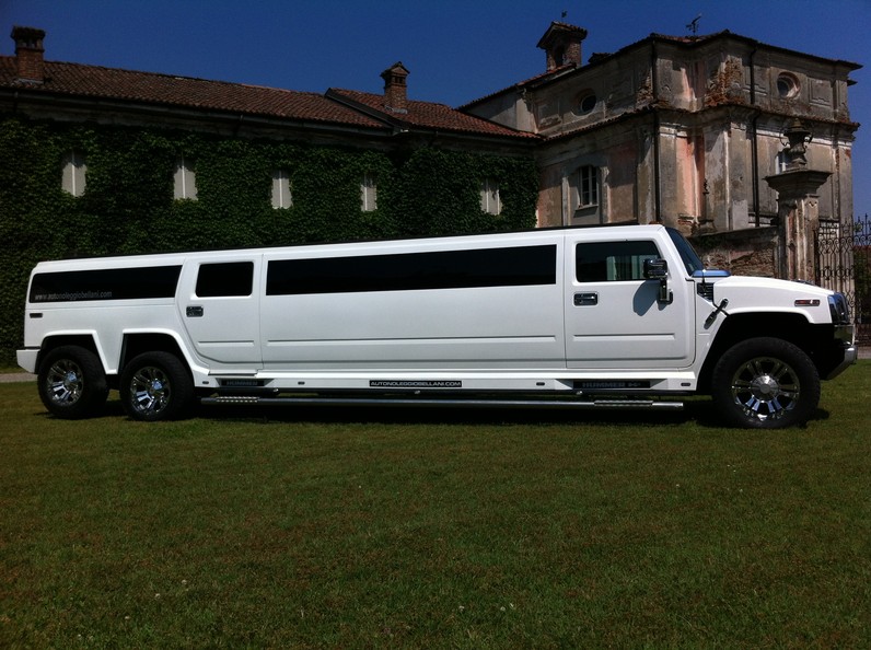 Matrimonio esclusivo ma con grinta? Nozze con una lussuosa auto? Autonoleggio Bellani propone a tutte le giovani coppie e ad adulti intraprendenti, una Hummer H2 limousine modello bianco perlato con tre assi (sei ruote omologato). Un mezzo speciale, che si può guidare solo se si è in possesso di patente C, adatto per festeggiare matrimoni e occasioni speciali. Un veicolo unico in Italia che, senza dubbio, lascia chiunque a bocca aperta. Colpisce sia per la sua suggestiva mole che per i modernissimi accessori interni, come il fantastico impianto stereo, luci da discoteca, due schermi digitali grandi e altri cinque più piccoli con lettore dvd, servizio di bicchieri ed effetti speciali. Lo sfondo ideale per fotografie degne delle migliori star.